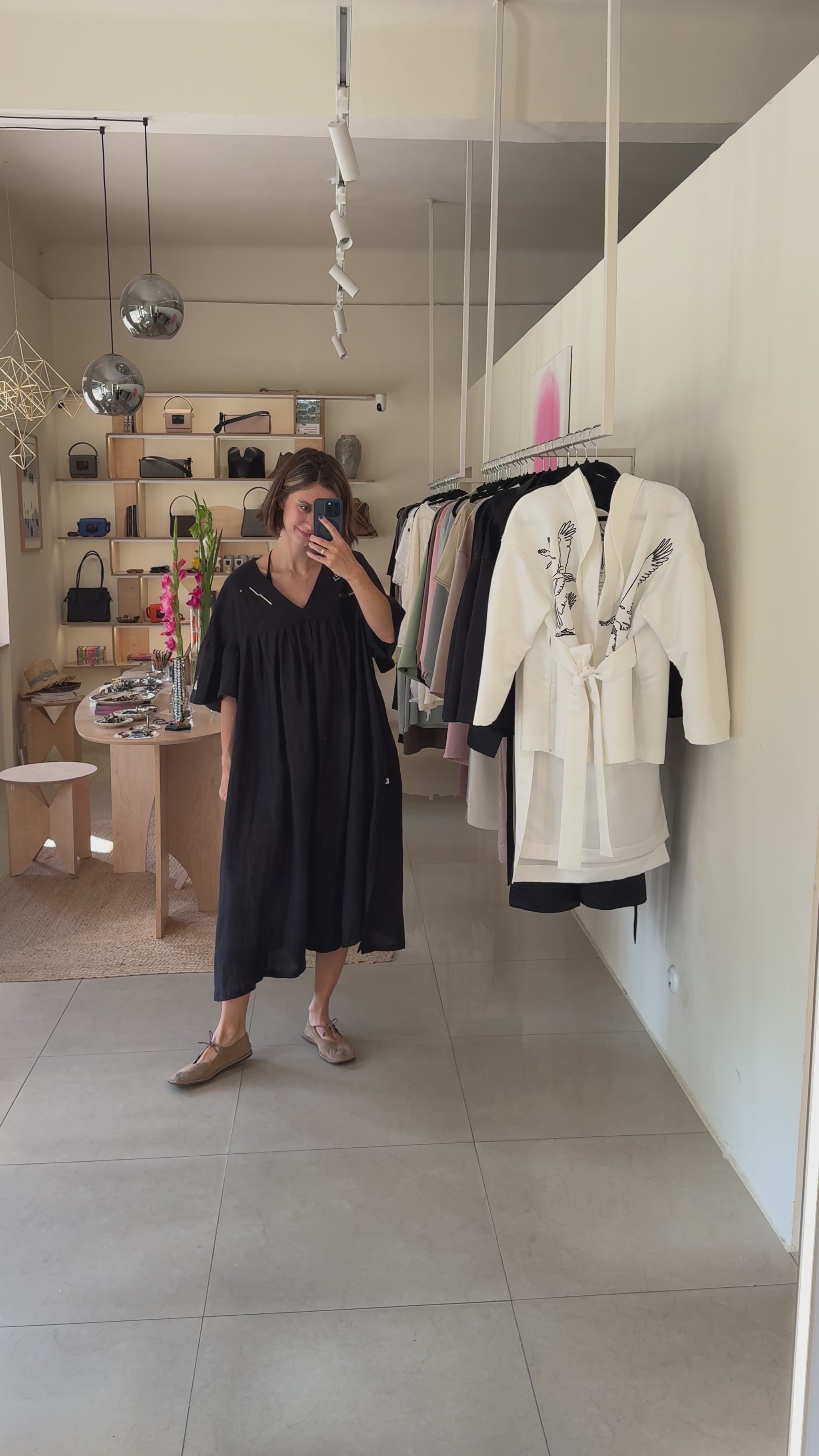 Loose-Fit Linen Blend Dress – “Black”