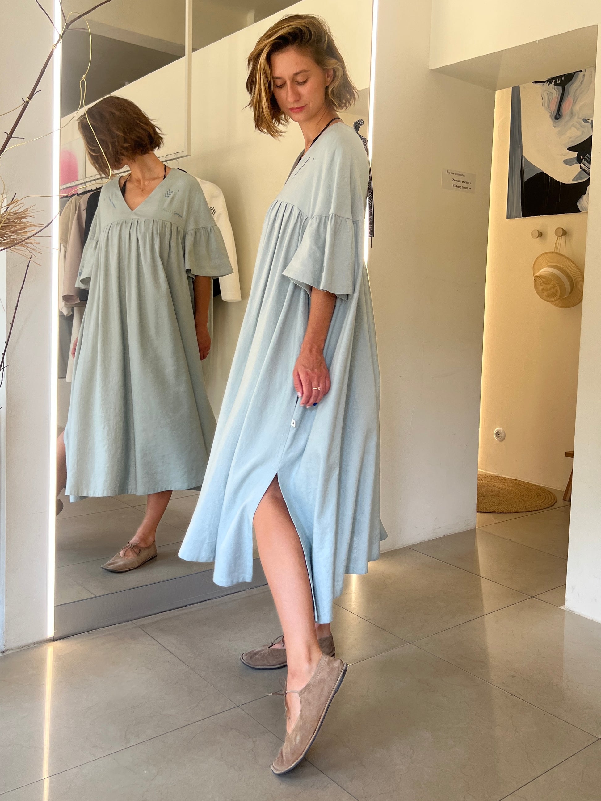 Loose-Fit Linen Blend Dress – “Fresh sky”