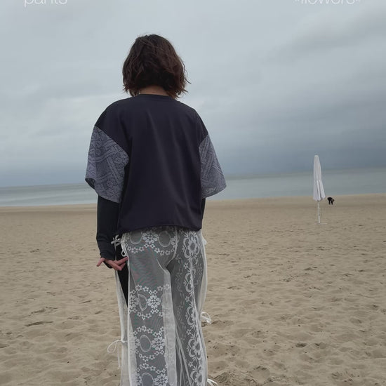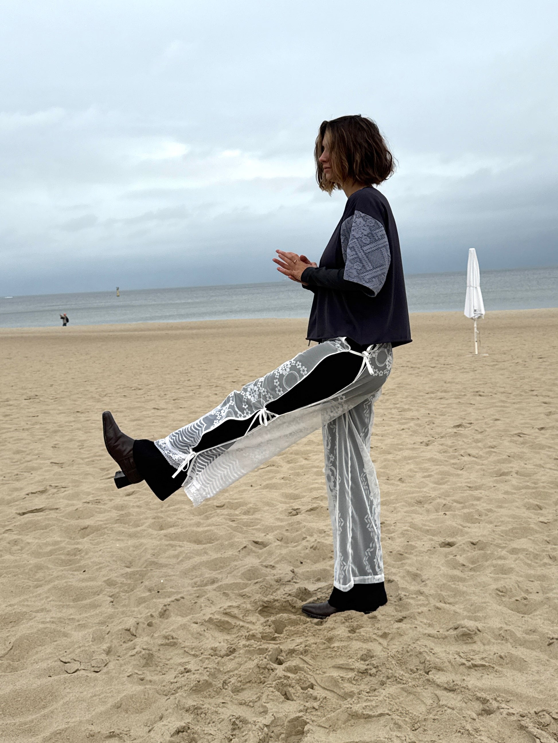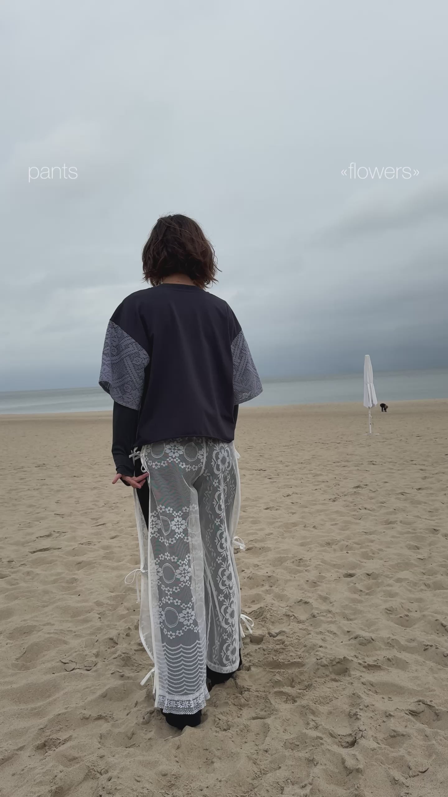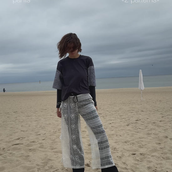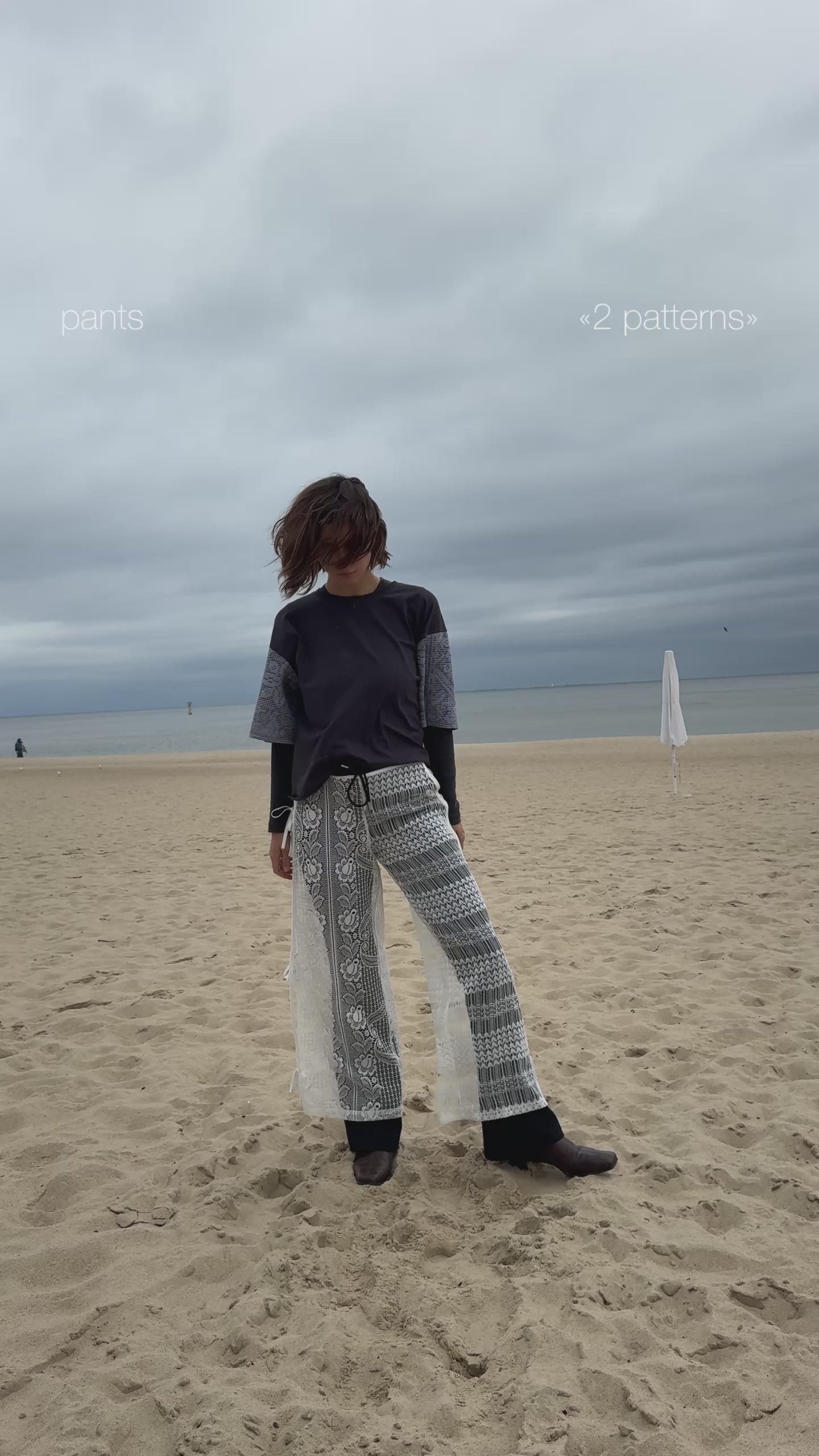 Pants made from vintage curtains. Each pair of pants is made from a different curtain, exists as a one-of-a-kind piece and carries a story